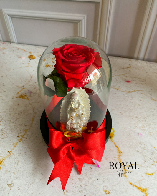 Virgen decorada mediana y rosa preservada